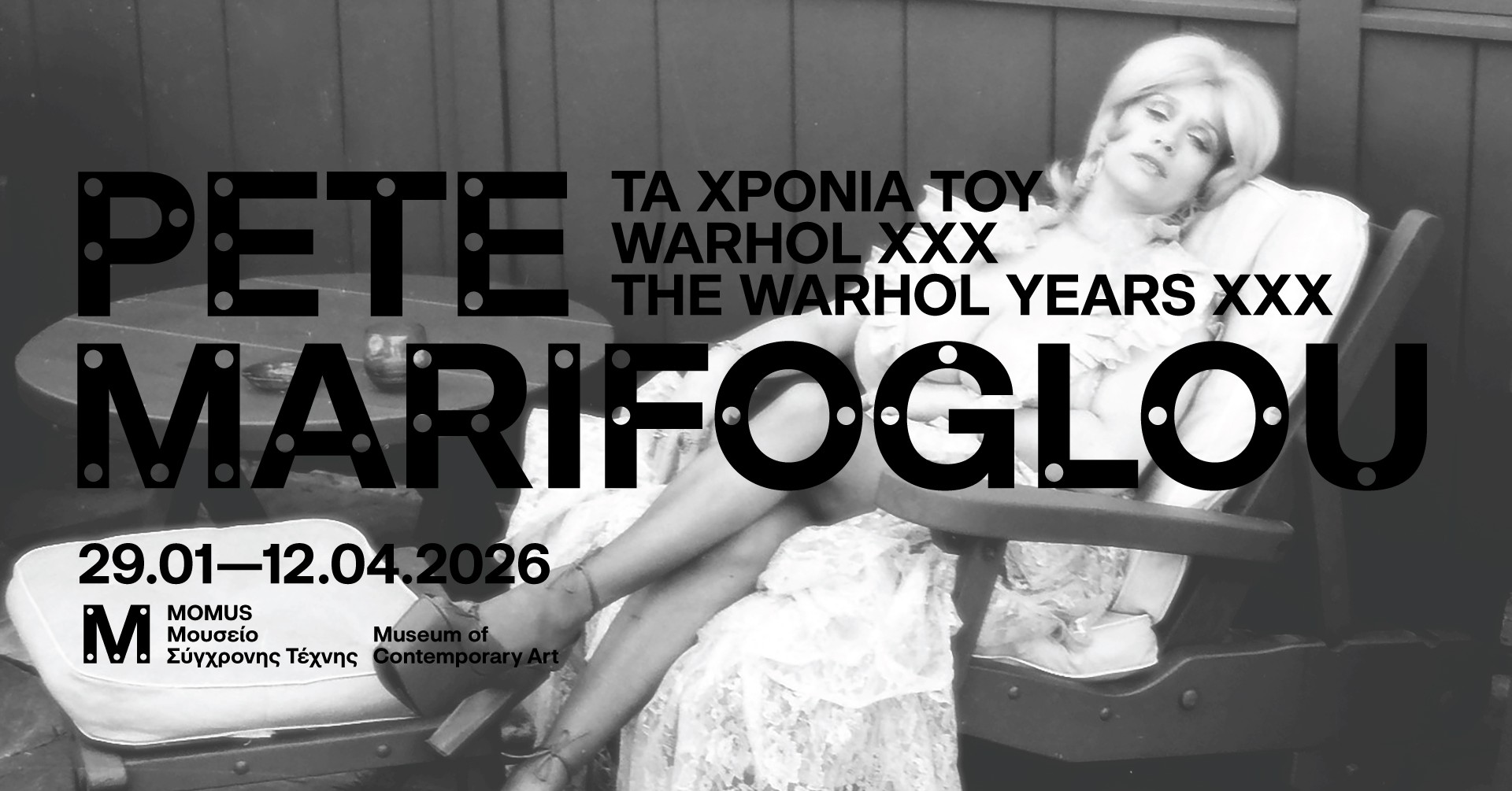 Έκθεση: «Pete Marifoglou. Τα χρόνια του Warhol ΧΧΧ» Εγκαίνια: Πέμπτη 29 Ιανουαρίου 2026, 19:00 Case Studio | MOMUS – Μουσείο Σύγχρονης Τέχνης Η έκθεση παρουσιάζει ένα, σε μεγάλο